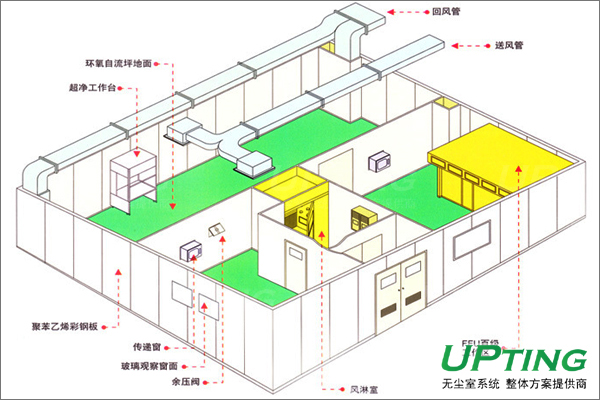 [無塵車間高架地板系統作用]百級以上的潔凈室要求室內空氣流形為垂直流,所以必須使用帶孔的高架地板。高架地板的作用就是把經過潔凈室頂部高效過濾器處理的空氣垂直導入地板下方的回風道,從而在潔凈室內垂直的氣流流形,高架地板下方可作為檢修空間,方便布置電氣管線、氣體管路、給排水管道。
