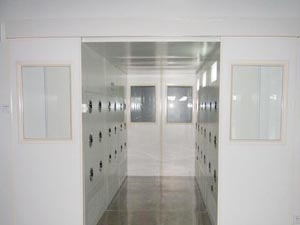 貨淋室貨淋室、浴塵室、貨淋機(jī)、貨淋門、貨淋通道、吹塵室、防爆雙吹貨淋室、單人雙吹貨淋室、高智能語音貨淋室、烤漆板貨淋室、全不銹鋼貨淋室、電子互鎖貨淋室、自動(dòng)感應(yīng)貨淋室是貨進(jìn)出潔凈室所必需的通道并同時(shí)起到氣閘室密閉潔凈室的作用。為了減少由于貨進(jìn)出所帶來的大量塵埃粒子,經(jīng)高效過濾器過濾后的潔凈氣流由可旋轉(zhuǎn)噴嘴從各個(gè)方向噴射至貨物上,有效而迅速清除塵埃粒子,清除后的塵埃粒子再由初、高效過濾器過濾后重新循環(huán)到貨淋區(qū)域內(nèi)。